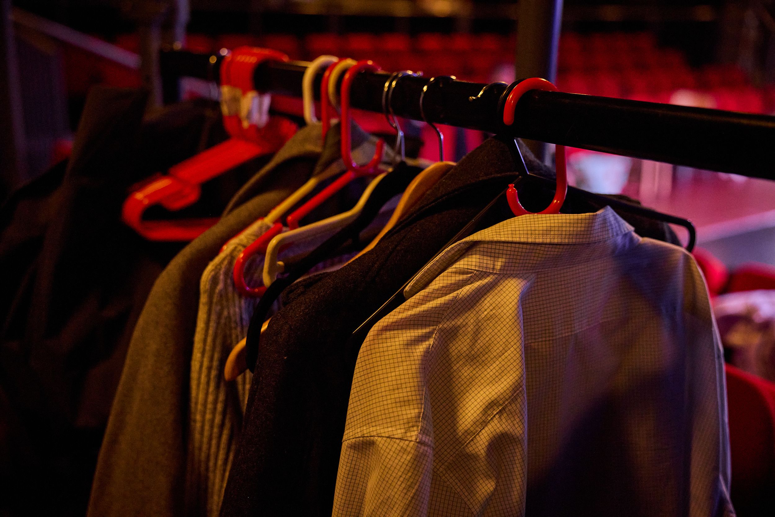 Costumes hanging on a rail backstage, ready for the dress rehearsal